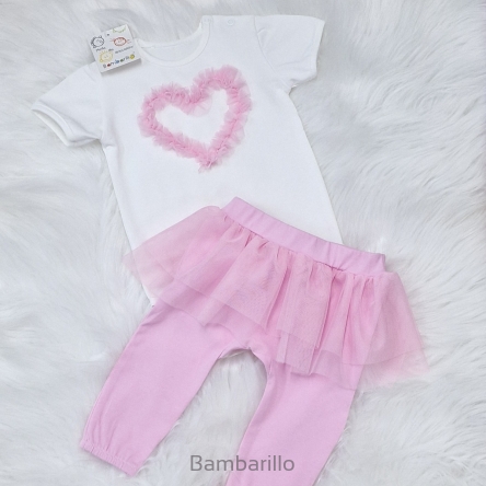 Spodenki zdobi delikatna, tiulowa spódniczka w tym samym kolorze.